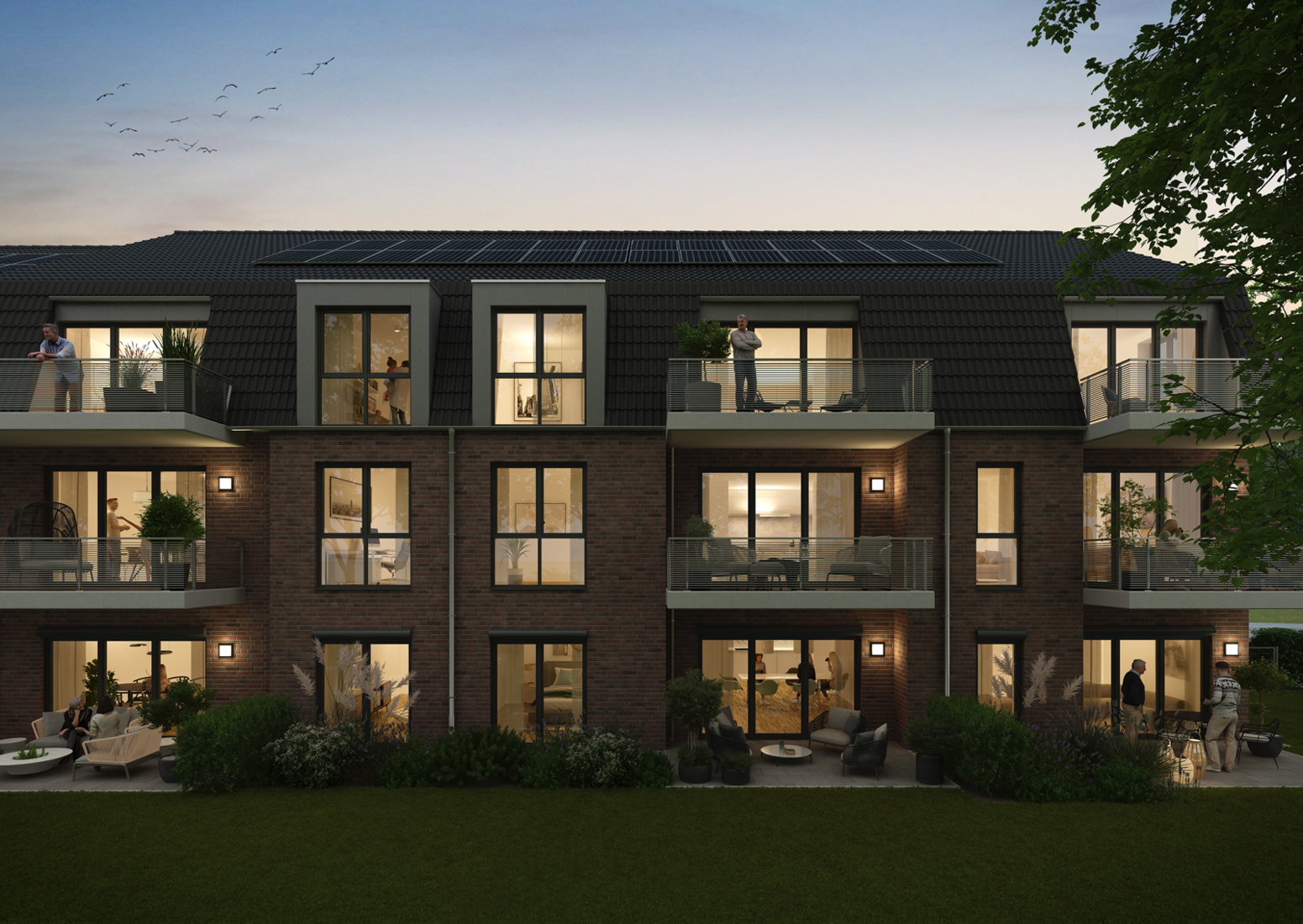 Auf dem alten Hofgrundstück an der Ecke Hauptstraße und Mühlenstraße entsteht ein Gebäude mit achtzehn 2- bis 4-Zimmer-Eigentumswohnungen, verteilt auf zwei Hauseingänge mit Mansarddach und einer rot-braunen Klinkerfassade, die perfekt in die dörfliche Umgebung passt. Der stilvolle Neubau und die alte erhabene Linde, die den Mittelpunkt der Gartenanlage bildet, ergeben zusammen ein charmantes Ensemble und bieten Singles, Familien, Paaren und Senioren ein neues Zuhause in stadtnaher und idyllischer Lage. LinnHuus ist der ideale Ort, um im Grünen und dennoch in der Nähe von Hamburg und der Elbe zu leben.
